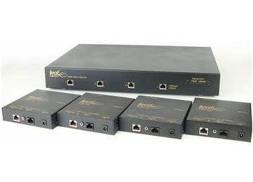 This 4 source to 4 zone matrix switch is capable of switching and distributing HDMI (3D, Video and Audio), IR, and RS232. Using HDBaseT “lite” as the medium, it requires a single Cat5e/Cat6 as the only cabling between the matrix and the zone with distances up to 230 feet (70 meters). The LTHDMI44P is easy to set-up utilizing leafs auto-EDID calibration system and features Leaf’s unique zone lock technology. Also, the LTHDMI44P includes (4) LB1’s (room breakout unit) providing everything you need in one box.